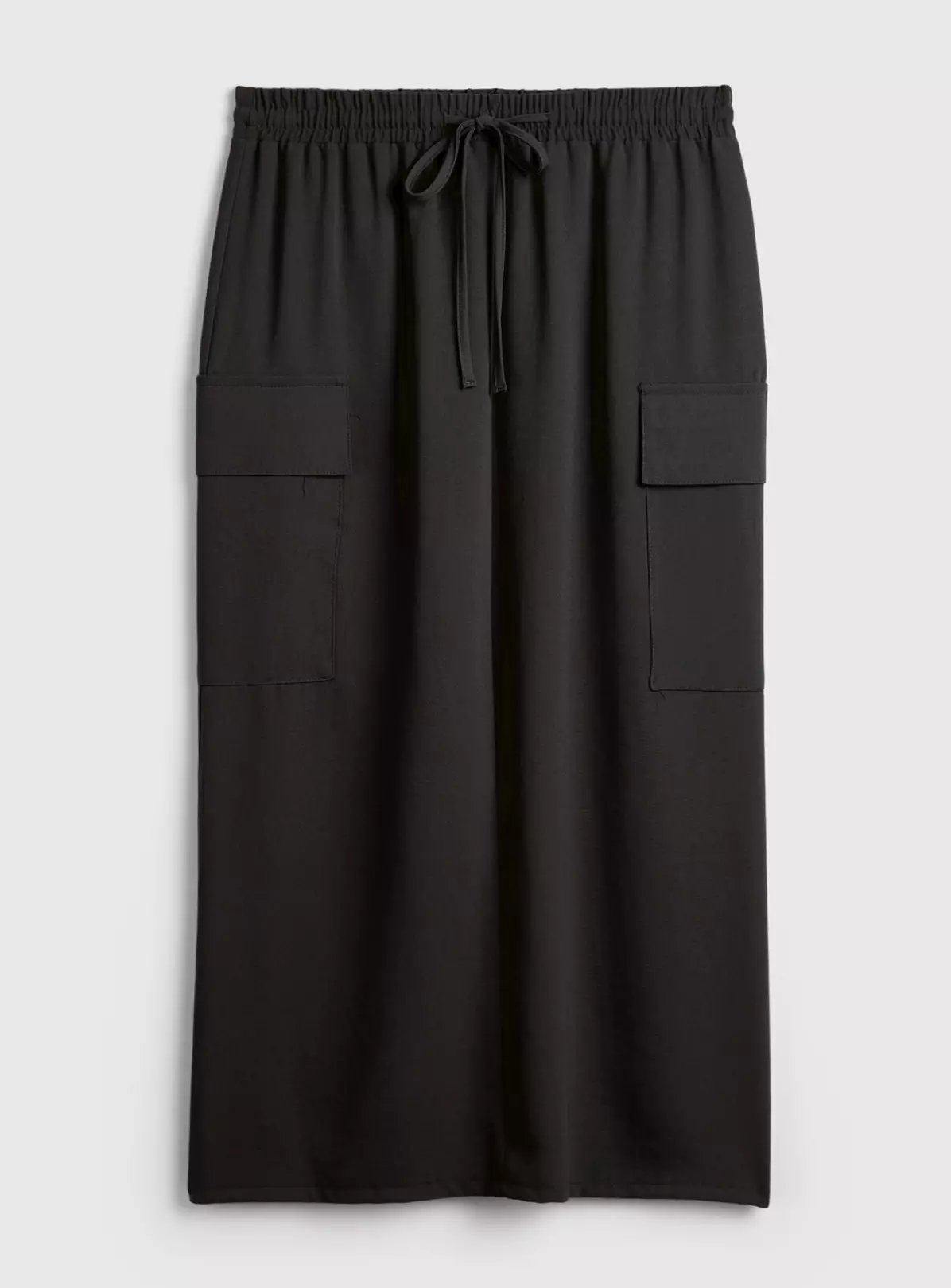 Are you a fan of cargo trousers? Then you’re going to love this black cargo skirt. In a lightweight fabric, it has an easy pull-on waist, cute non functional cargo pockets and a front vent. Team with a vest top and sandals for a warm weather look.