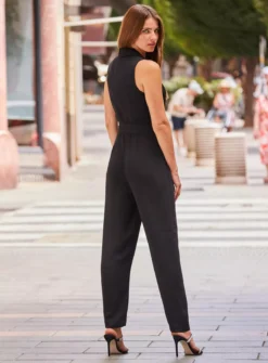 Elevate your party look with our black velvet jumpsuit. Featuring gorgeous puff sleeves, it also has a statement keyhole back with a tie detail. Team it with black heels for a show-stopping look.