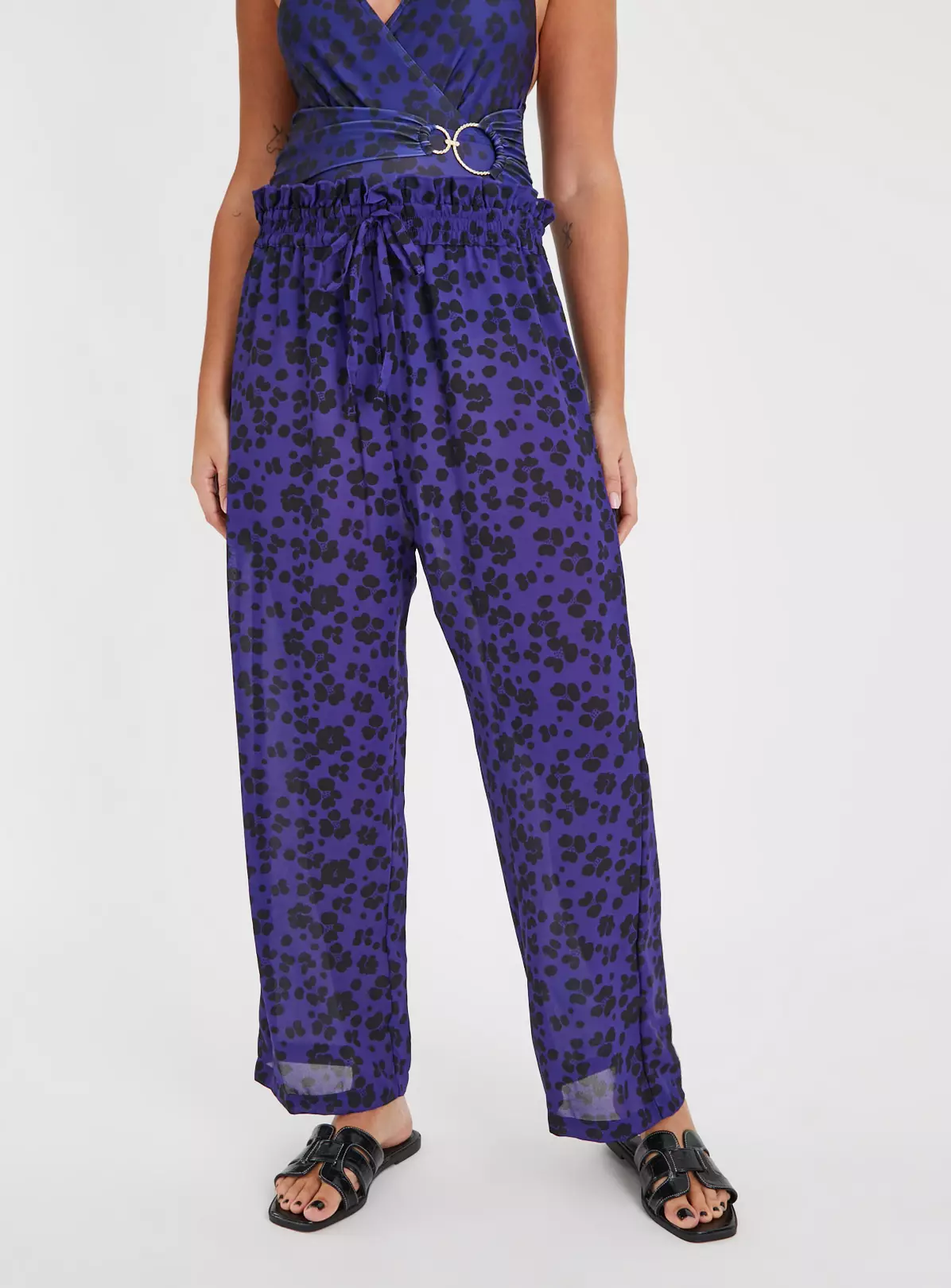 Get ready to hit the beach in style with these navy leopard print beach trousers. They feature a comfortable elasticated tie waistband, making them perfect for a day of relaxation by the sea!