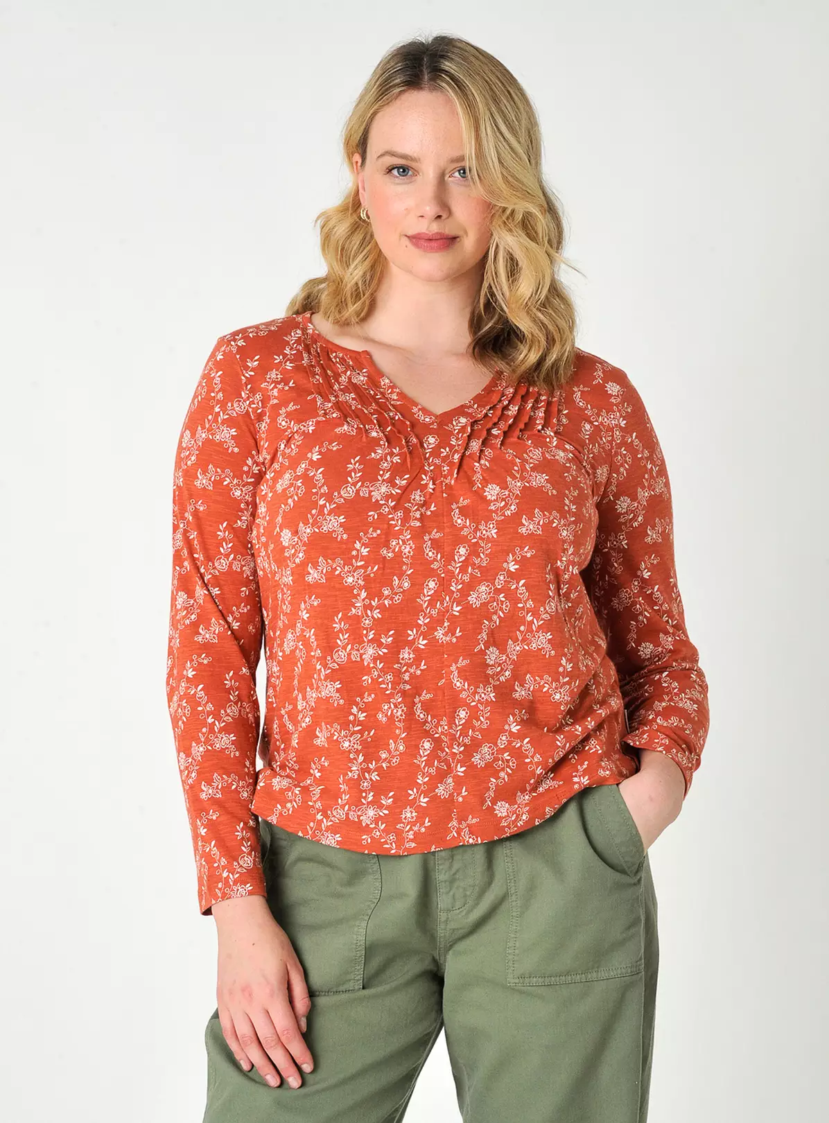 Our effortless printed Bethel jersey blouse has been designed with feminine pintuck details around the neckline for an elevated spin. Combined with a long sleeve and easy, relaxed fit. This hand-crafted printed style has been created in our carefully selected, responsibly sourced slub fabric and comes in handdrawn floral print, unique to Burgs.