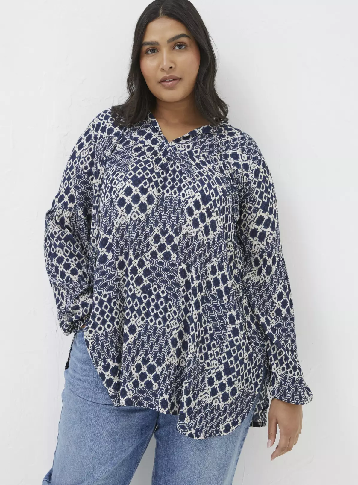 Our Georgia patchwork tunic is the perfect, easy-to-wear piece. Whether you’re heading into the office or out on the town, she’s comfortable, simple to style and still effortlessly attention grabbing. Her 100% viscose composition, shallow V neckline, curved hem and longline fit, create a flattering silhouette that looks great worn with leggings or jeans. The patchwork geo print adds a pop of pattern that’s inspired by all things handmade.