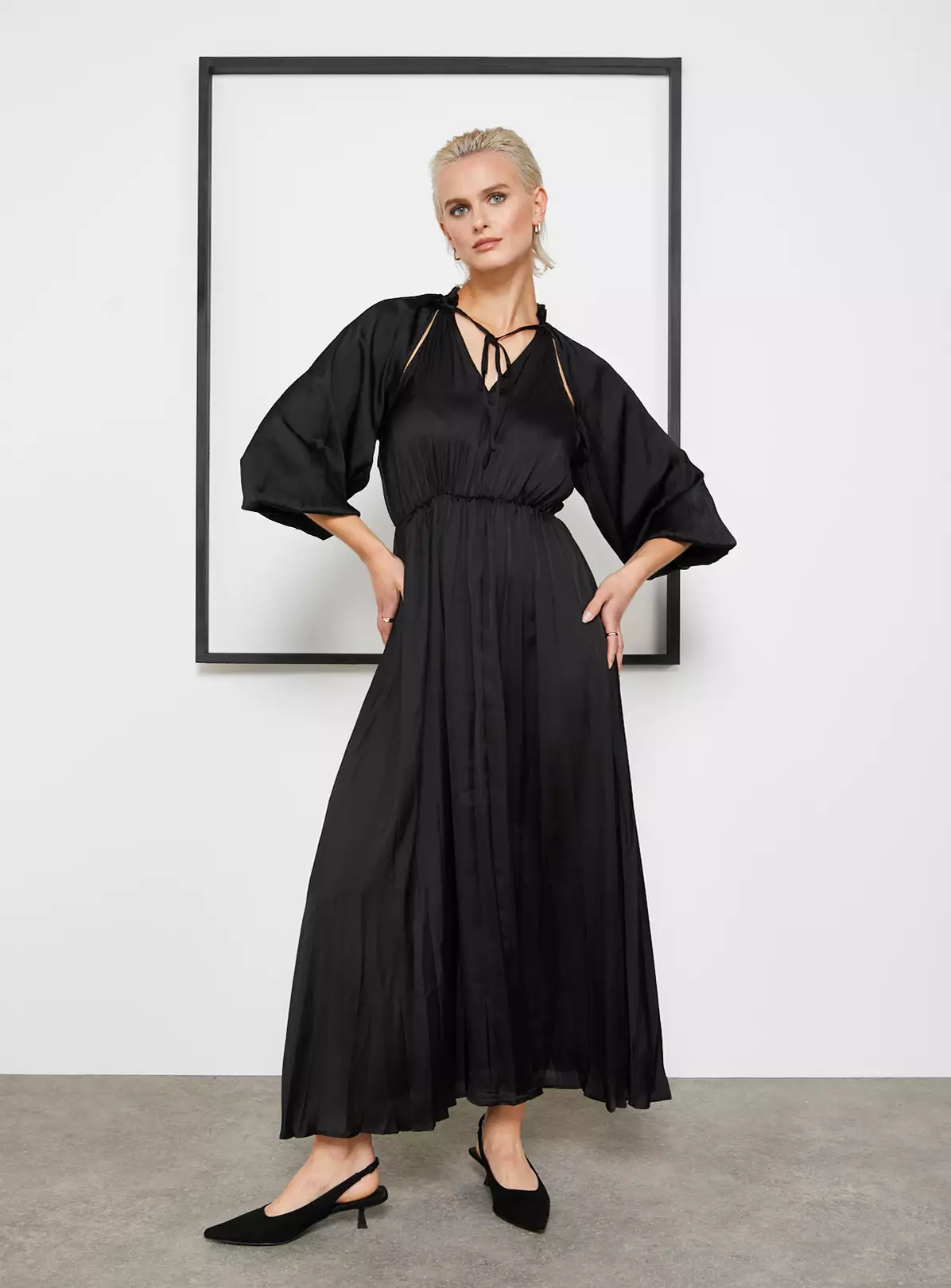 For All The Love Black Crushed Floaty Satin Tie Front Midaxi Dress 14