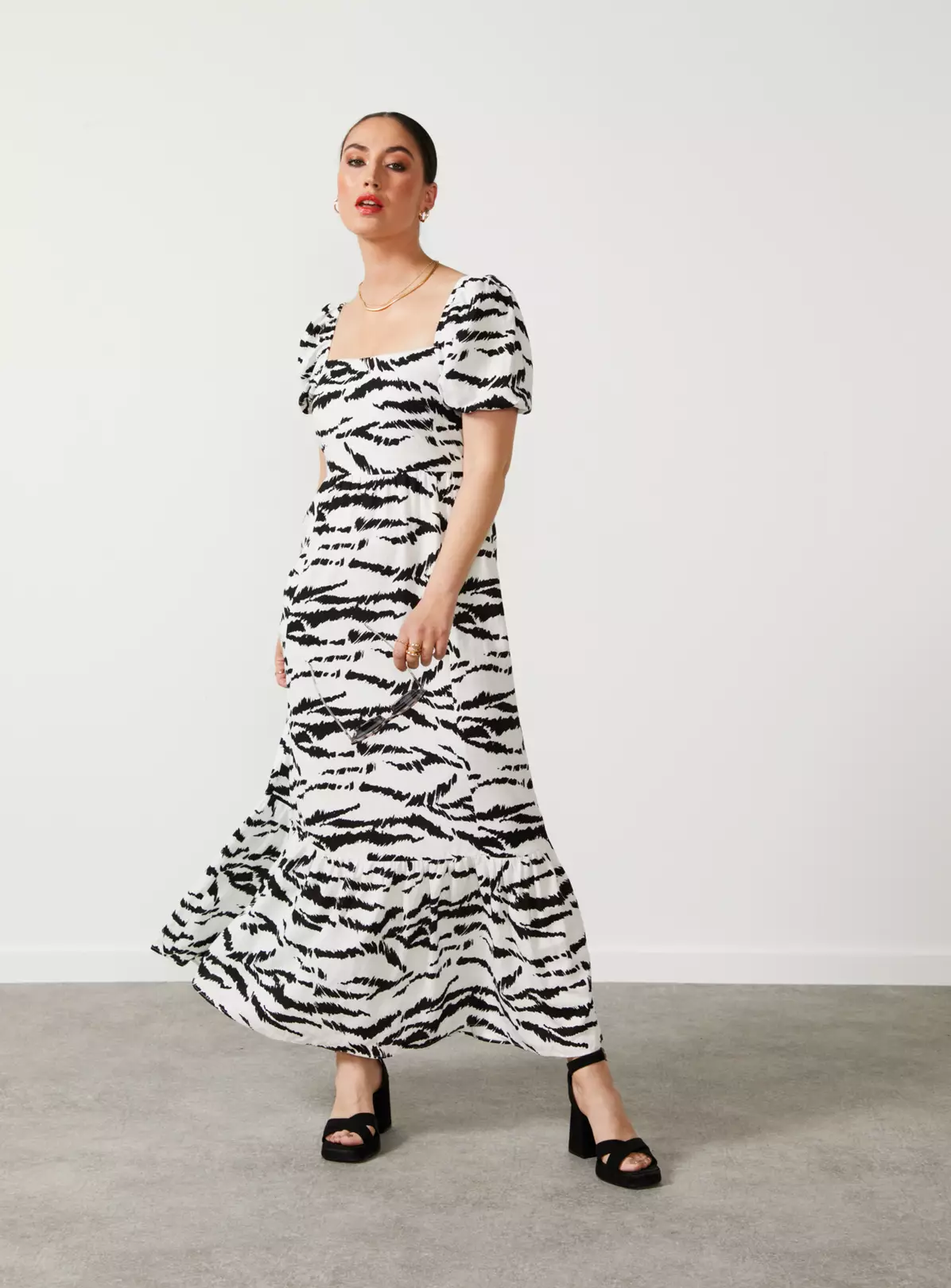 - Ultra-feminine zebra print linen midi dress