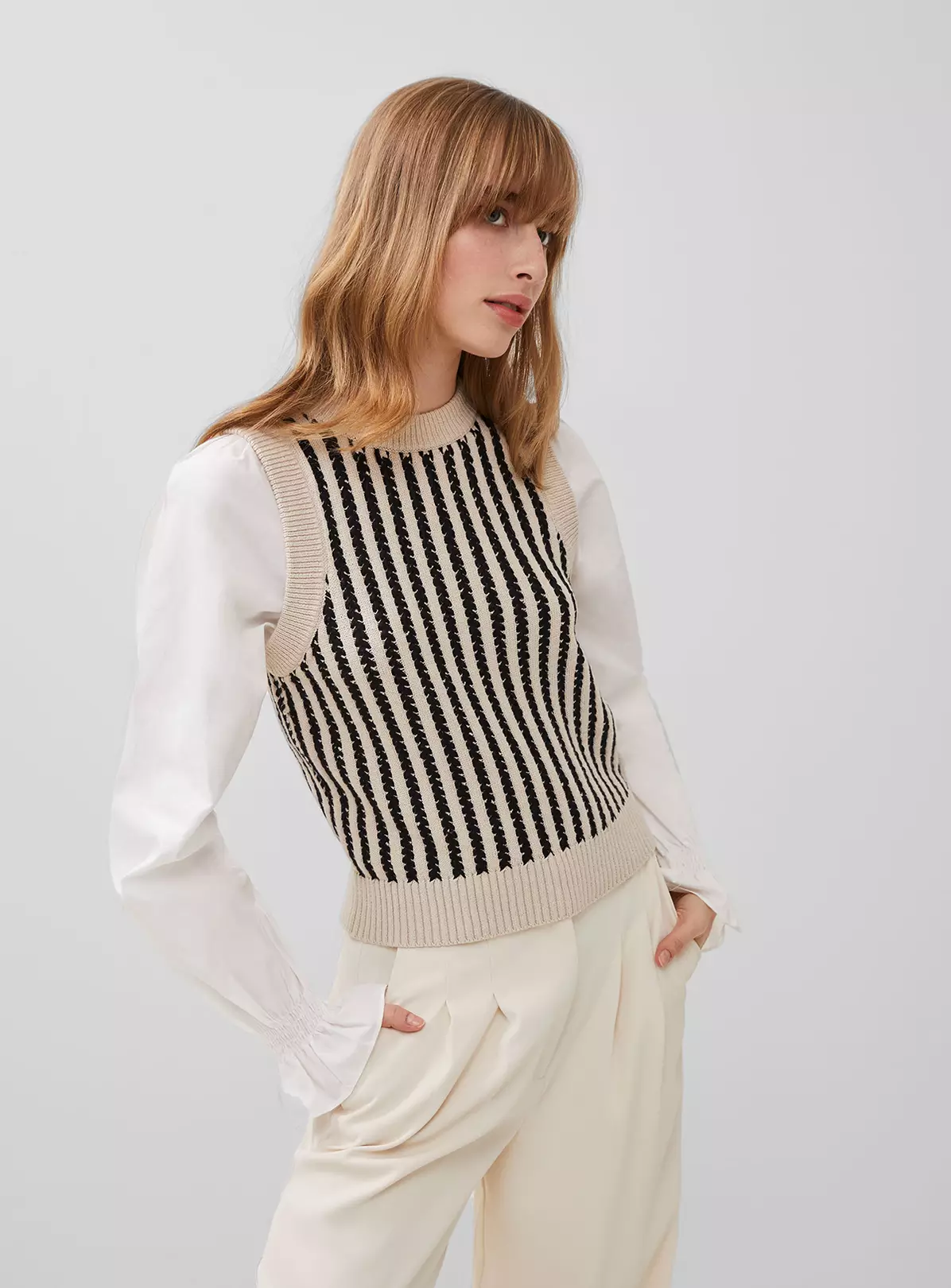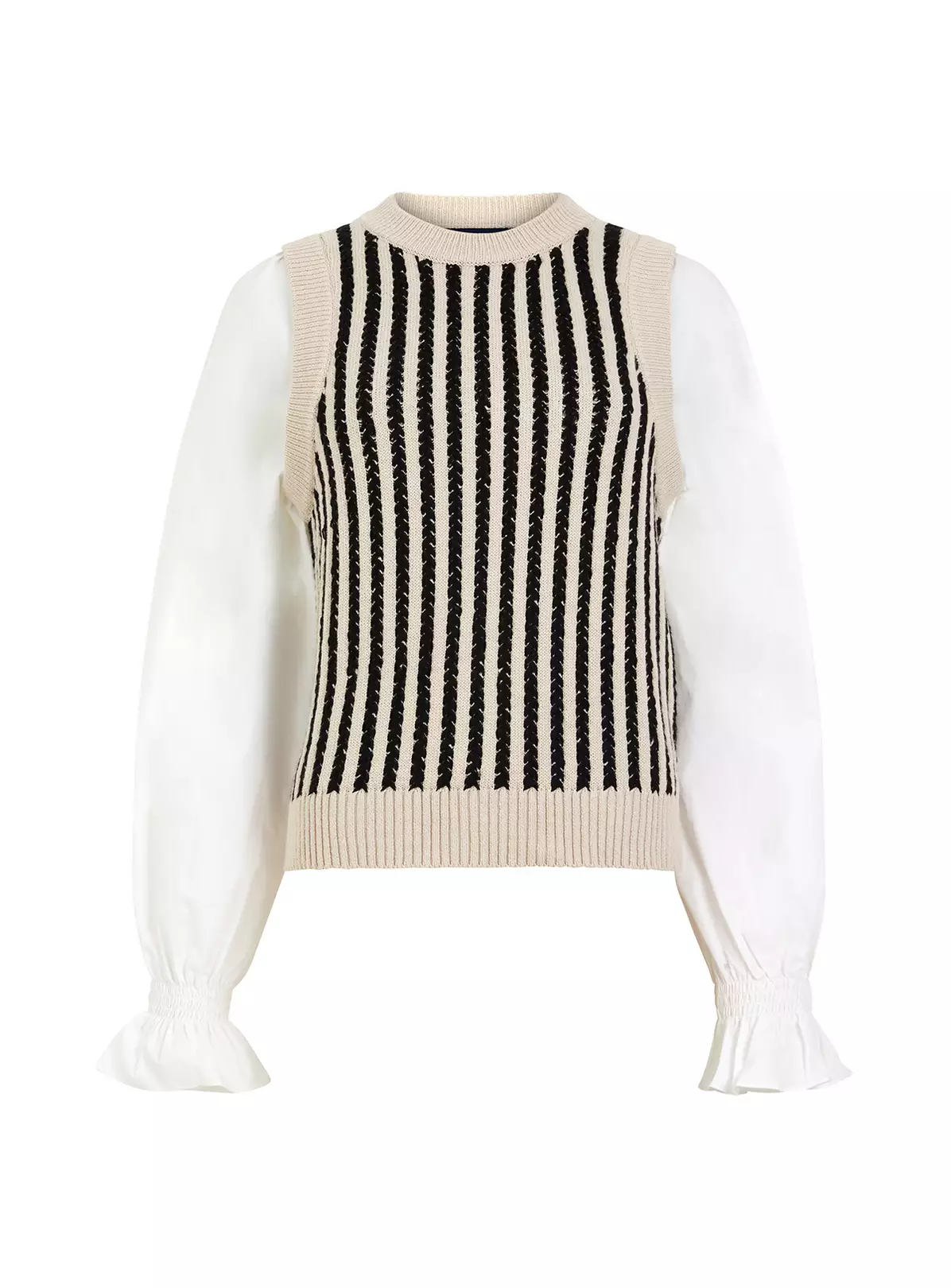 Our Hadlee Jessika Shirt Jumper is the ultimate fusion of comfort and style for all seasons. This unique jumper is the perfect choice for the modern fashionistas who love to make a statement by pairing a sophisticated pair of long shirt sleeves with elasticated cuffs with a boldly striped knit bodice which offers an endearing air to the effortless ensemble.