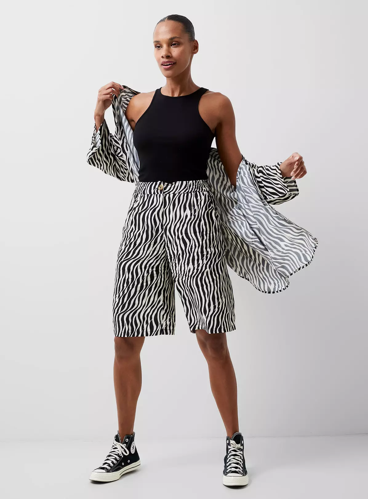 Your wardrobe is looking short on animal print this season. Stock up with the help of our Seine Eco Delphine Shorts. These lively shorts are a must have pair for making the most of sunshine skies with a monochrome zebra print embracing an over the knee length complete with comfortable elasticated back and easywear value and fly zip fastenings. Wear alongside our Seine Eco Delphine Shirt for a matching set made for summer. We have chosen to use a viscose yarn from LENZING called ECOVERO. The sustainable viscose fibres are produced using wood pulp derived from responsibly managed forests.