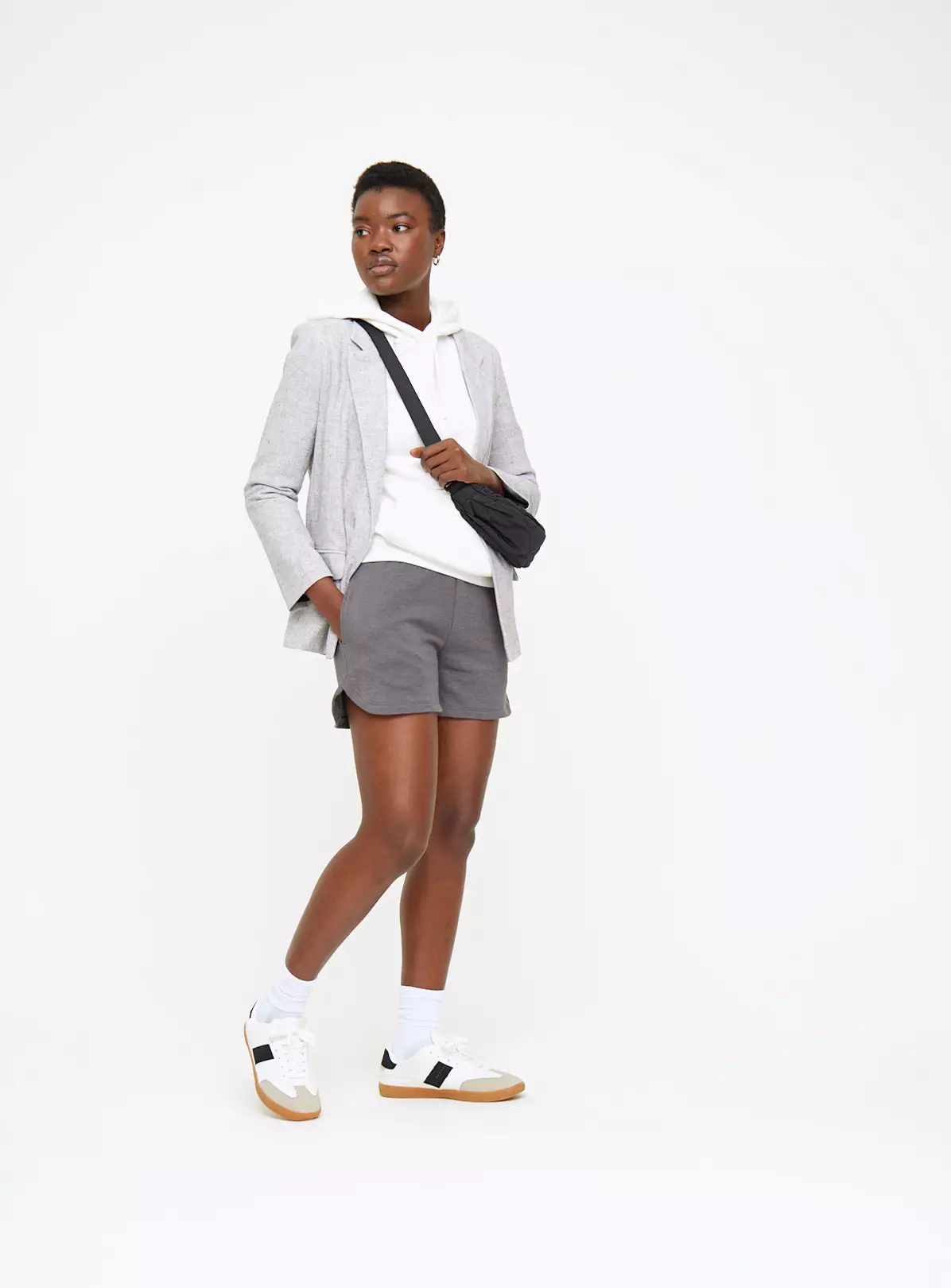 An essential for your loungewear collection, our runner shorts come in a versatile grey shade. Crafted from a comfy cotton-rich blend, they have an elasticated waist with a drawstring detail. Team them with a ribbed tank top for a laidback look.