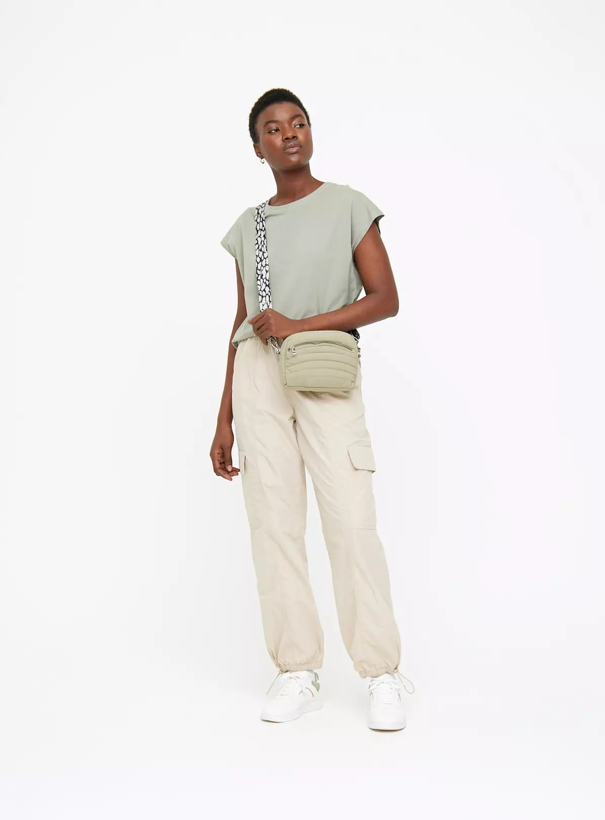 Stay on-trend with our khaki t-shirt. Elevated by a dropped hem with curved detail, it features short sleeves and a curved neckline. Team with black jeans and trainers for a laidback look.