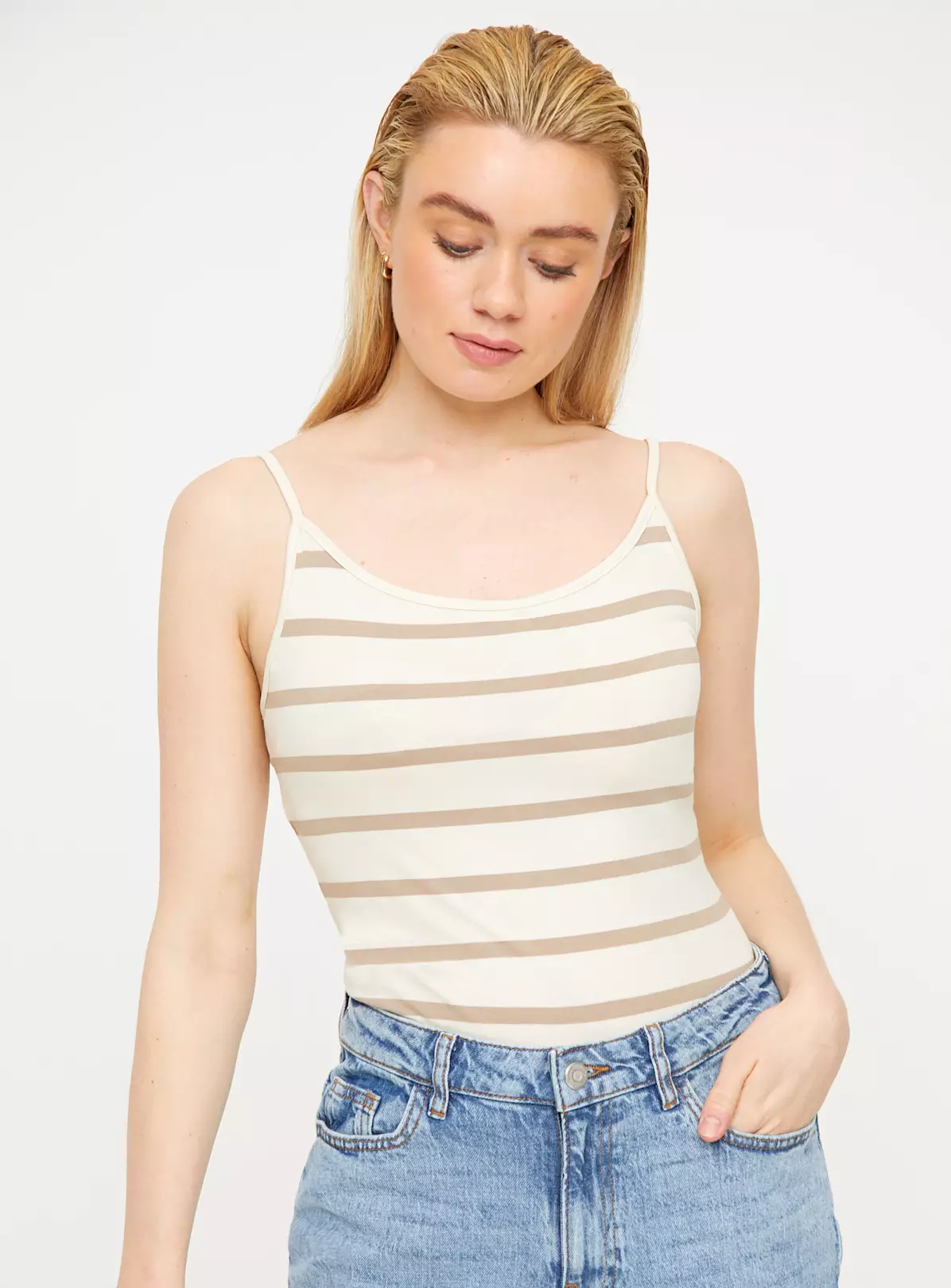 Khaki Stripe Cami Vest Top 2 Pack 22