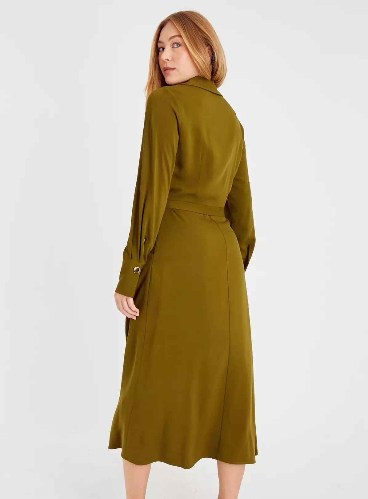 Make a statement in our khaki wrap midaxi dress. It’s elevated by a wrap over design with a stunning buckle detail. In an on-season shade of khaki green, it’s perfect for pairing with leather boots.