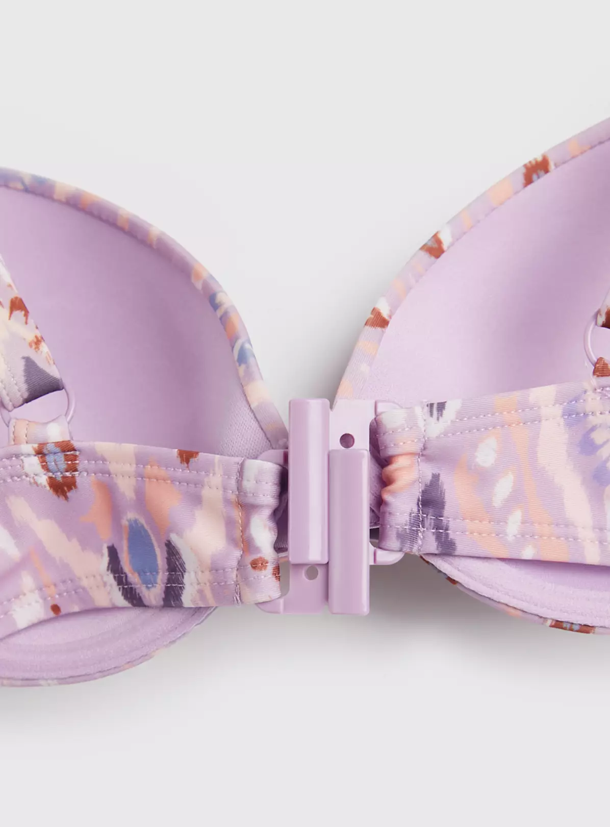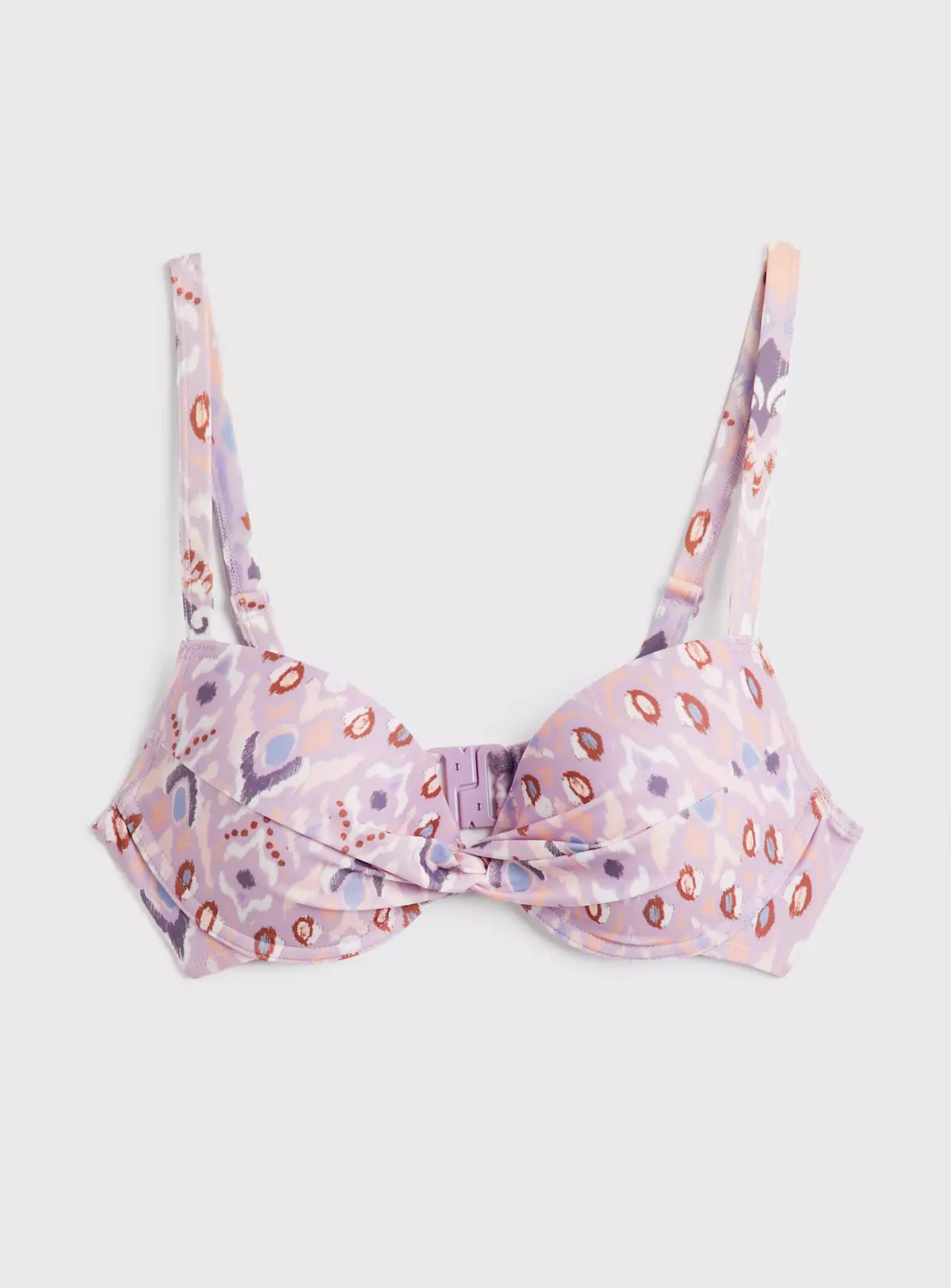 Update your summer swimwear collection with this pretty plunge bikini top. The gorgeous lilac shade and Aztec print is perfect for adding a splash of fun to your holiday wear. Featuring moulded cups and adjustable straps, pair with the matching bottoms for the complete look.