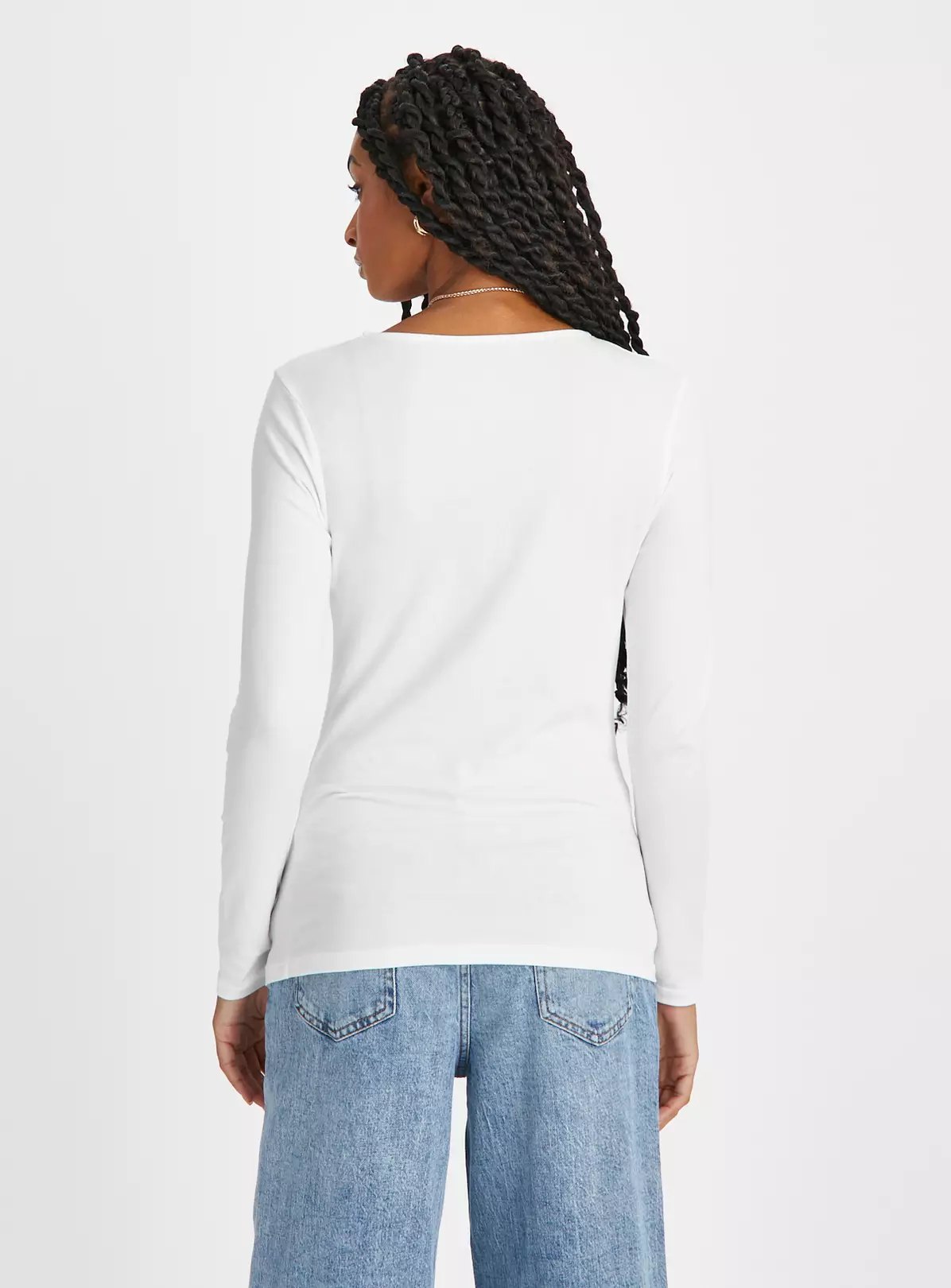 Stock up on seasonal staples with our modal long sleeve top. In a versatile shade of white and in a slim fit, this tee is perfect for pairing with denim jeans and trainers. Also available in other colours.