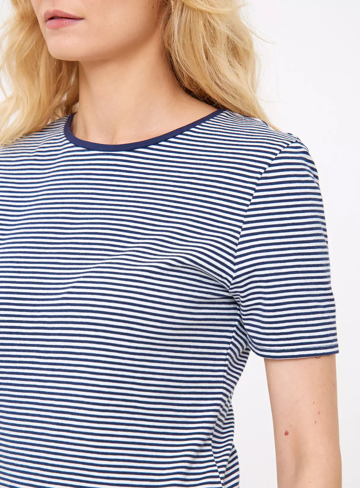 Go all nautical on us with this slim fit navy and white t-shirt. Perfect with jeans and trainers for a laid back look. It’s pure cotton and is bound to help you spring into the next season.