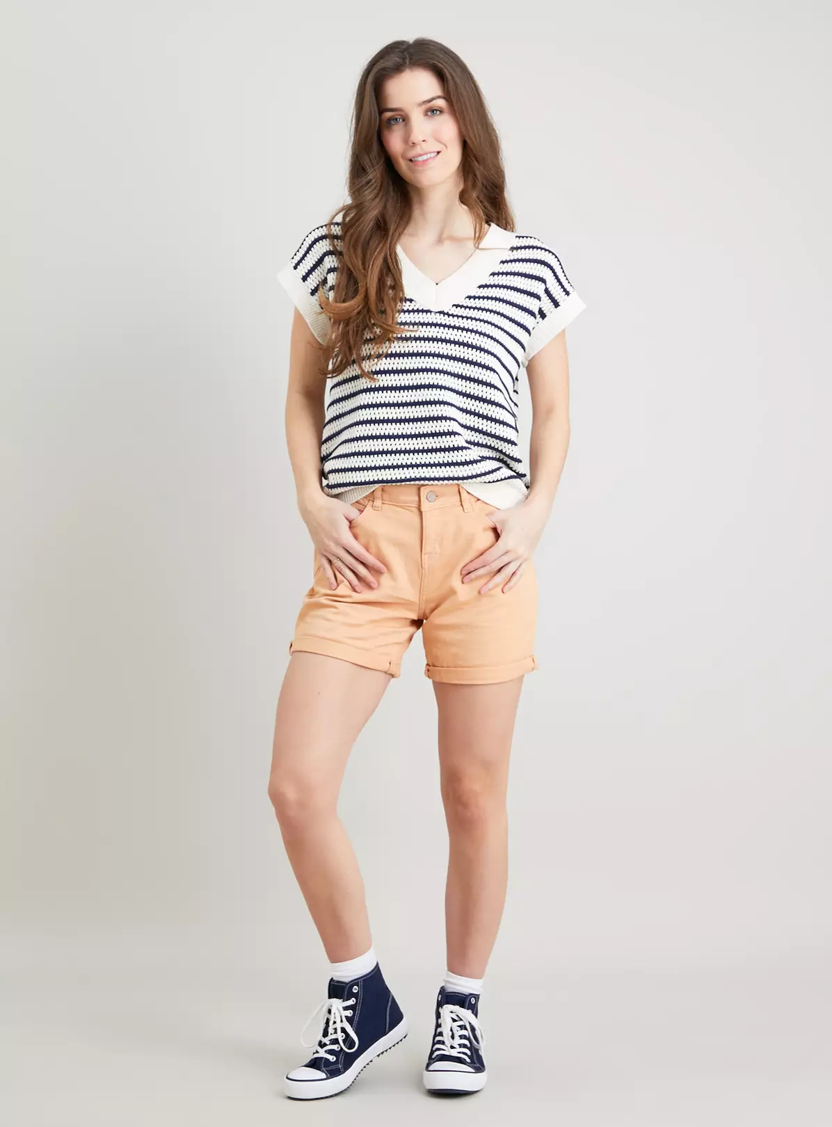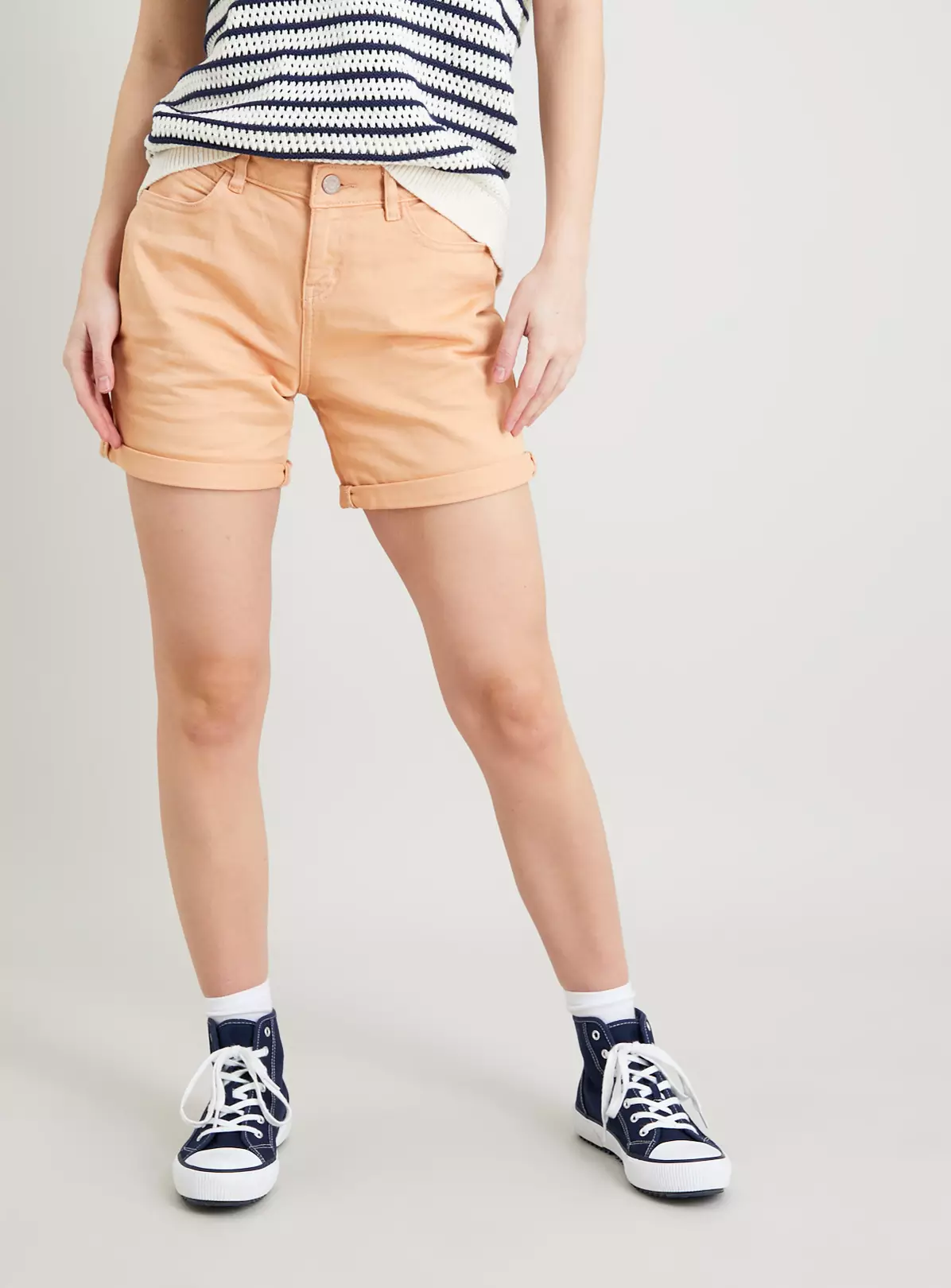 A must-have for the impending warm weather, these adorable peach twill boy shorts will put you firmly in the mood for summer. Cotton rich, with a tiny bit of stretch, they’re soft and comfy with a value and zip fly, belt loops and five pockets. Team with a favourite tee, a white overshirt tied at the waist and something fruity in a frosty glass.