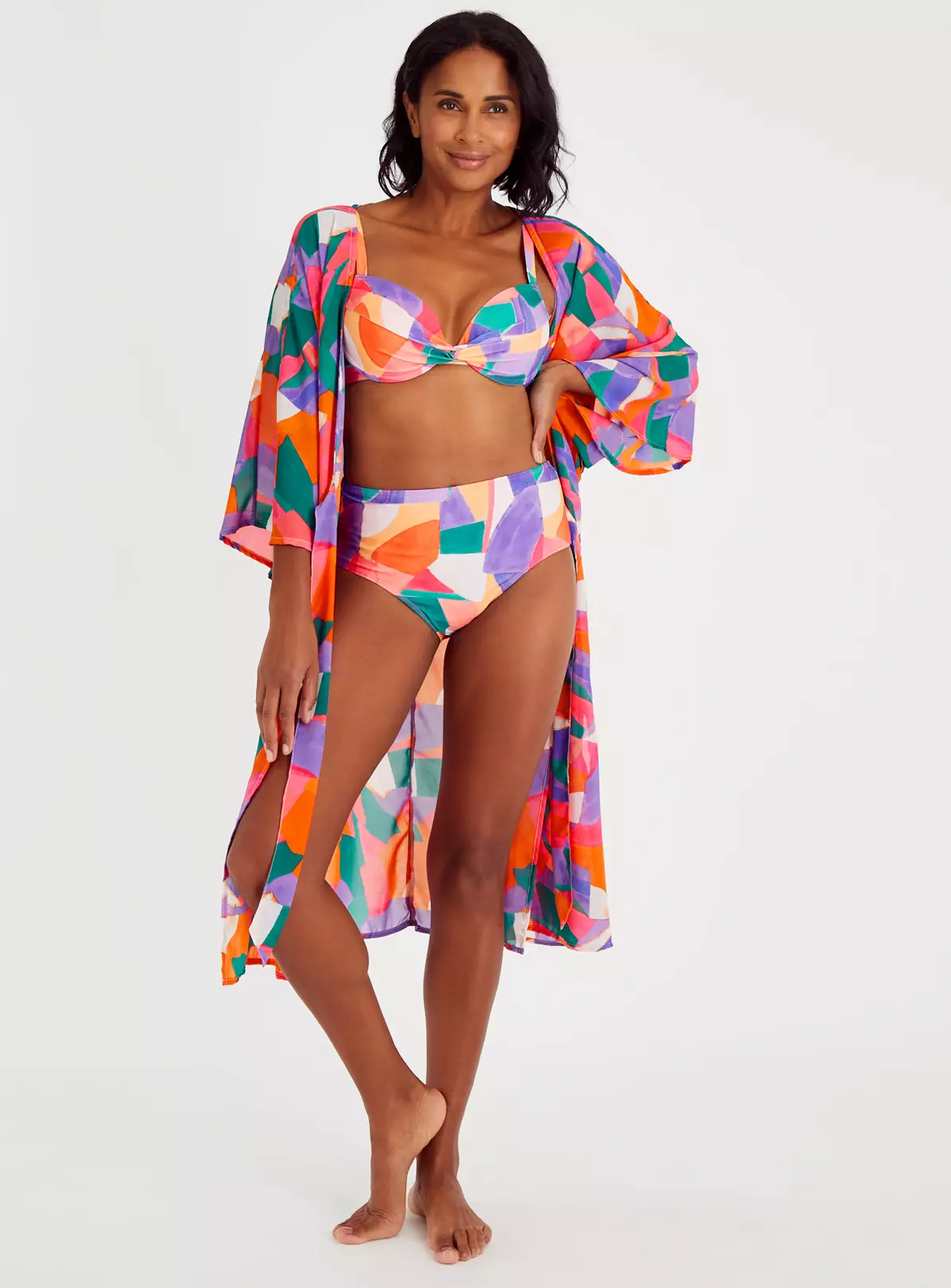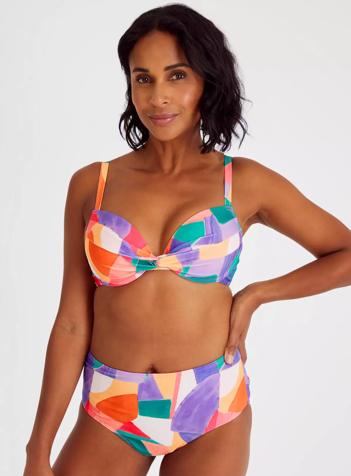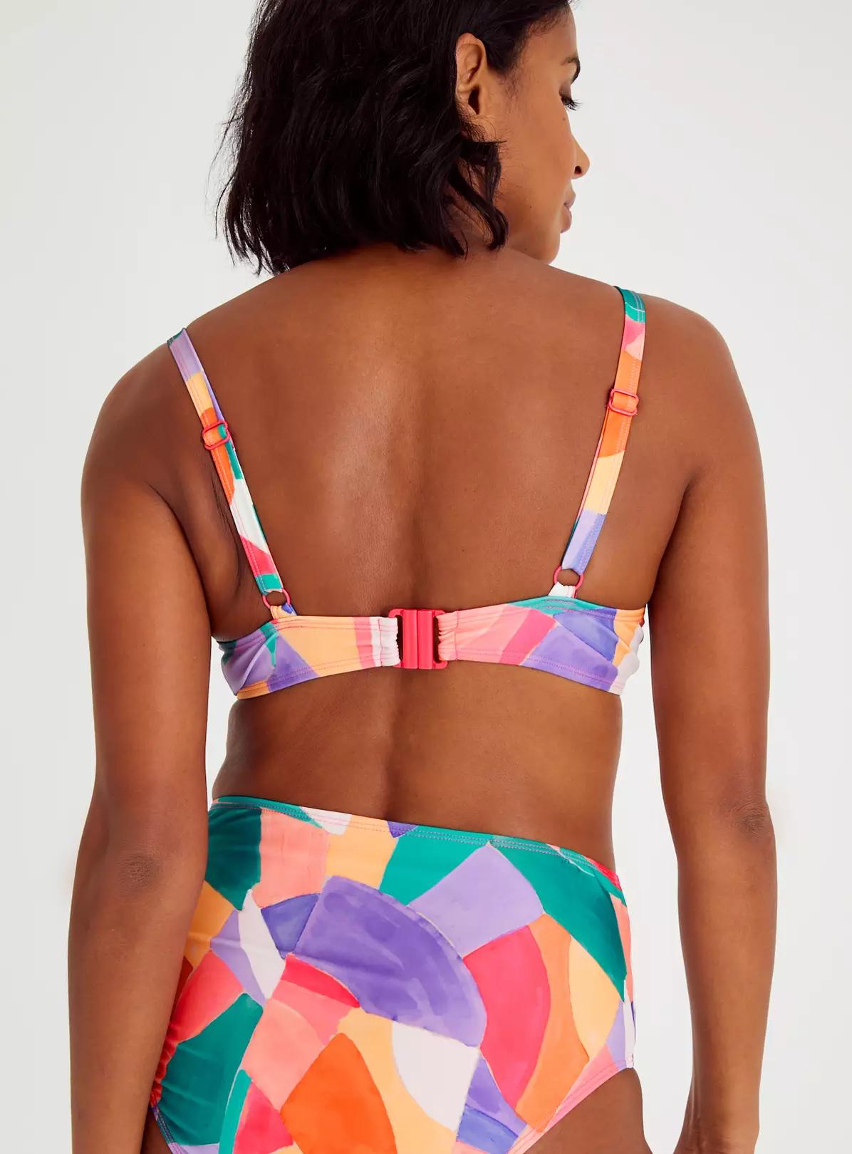 The ultimate bikini top for the beach, this bright and bold abstract print top will take your holiday snaps to the next level. With a flattering plunge design and moulded cups, wear it with the matching bikini bottoms and hit the beach!