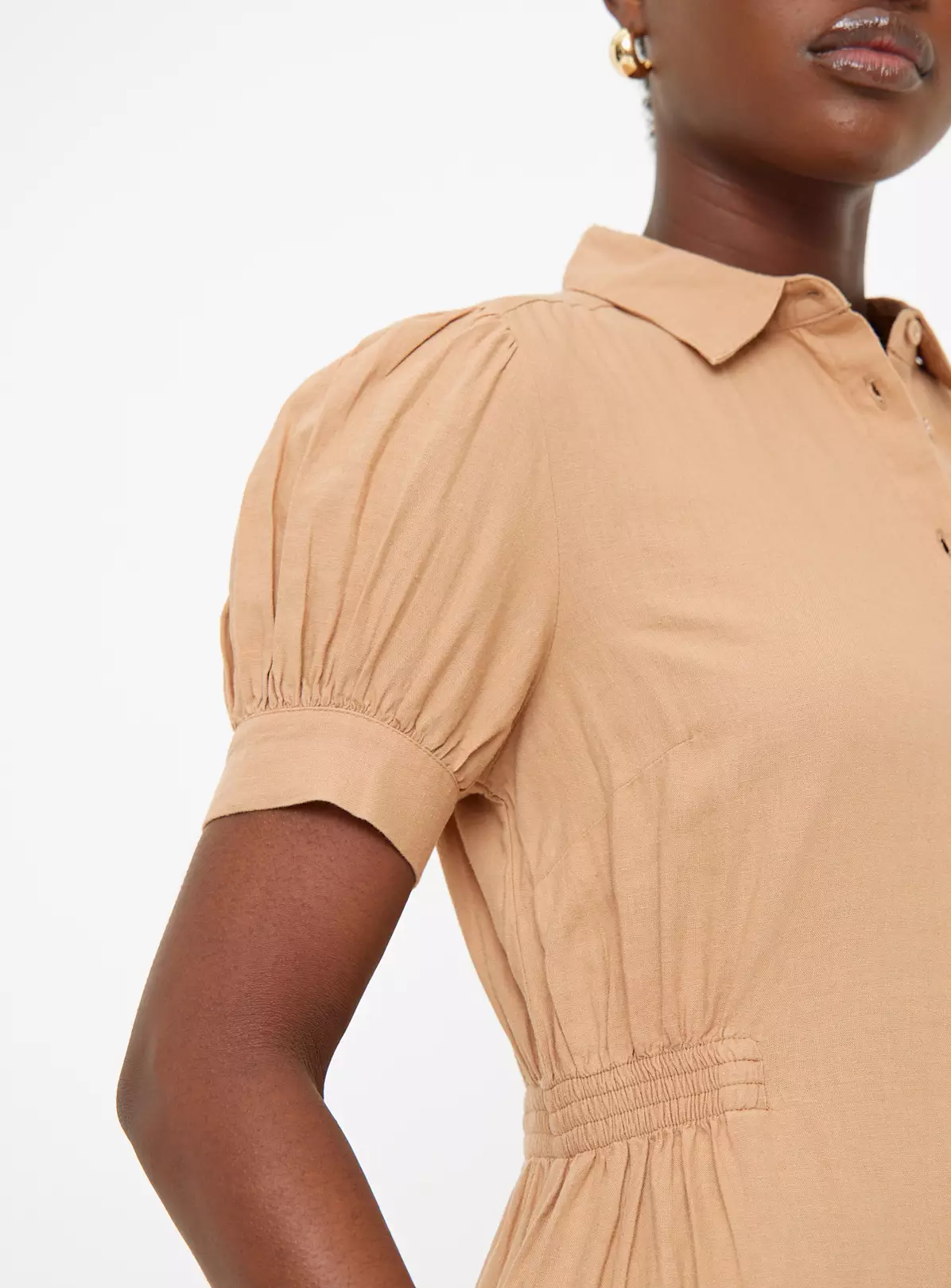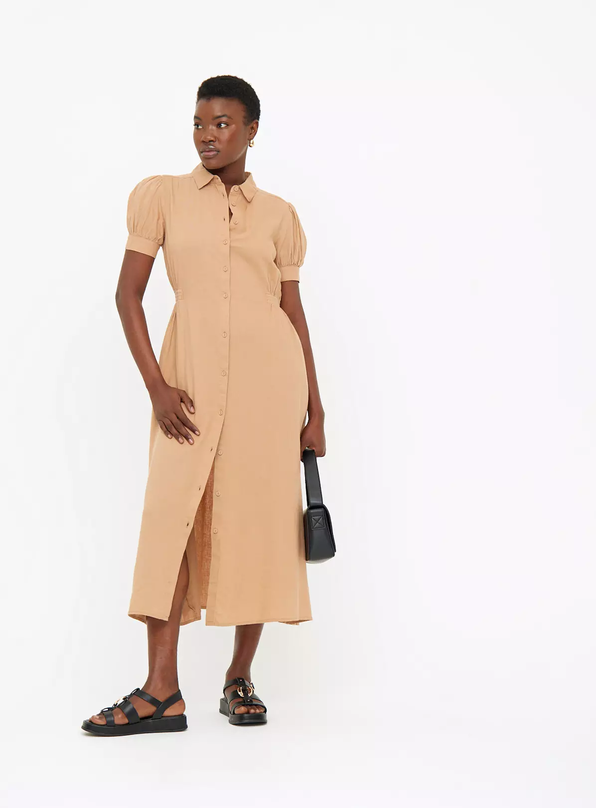 Crafted from a linen blend, our stone shirt dress is a favourite from our latest collection! In a flattering midaxi length, it has short sleeves and features value fastening on the front. Complete the look by adding a pair of black sandals.