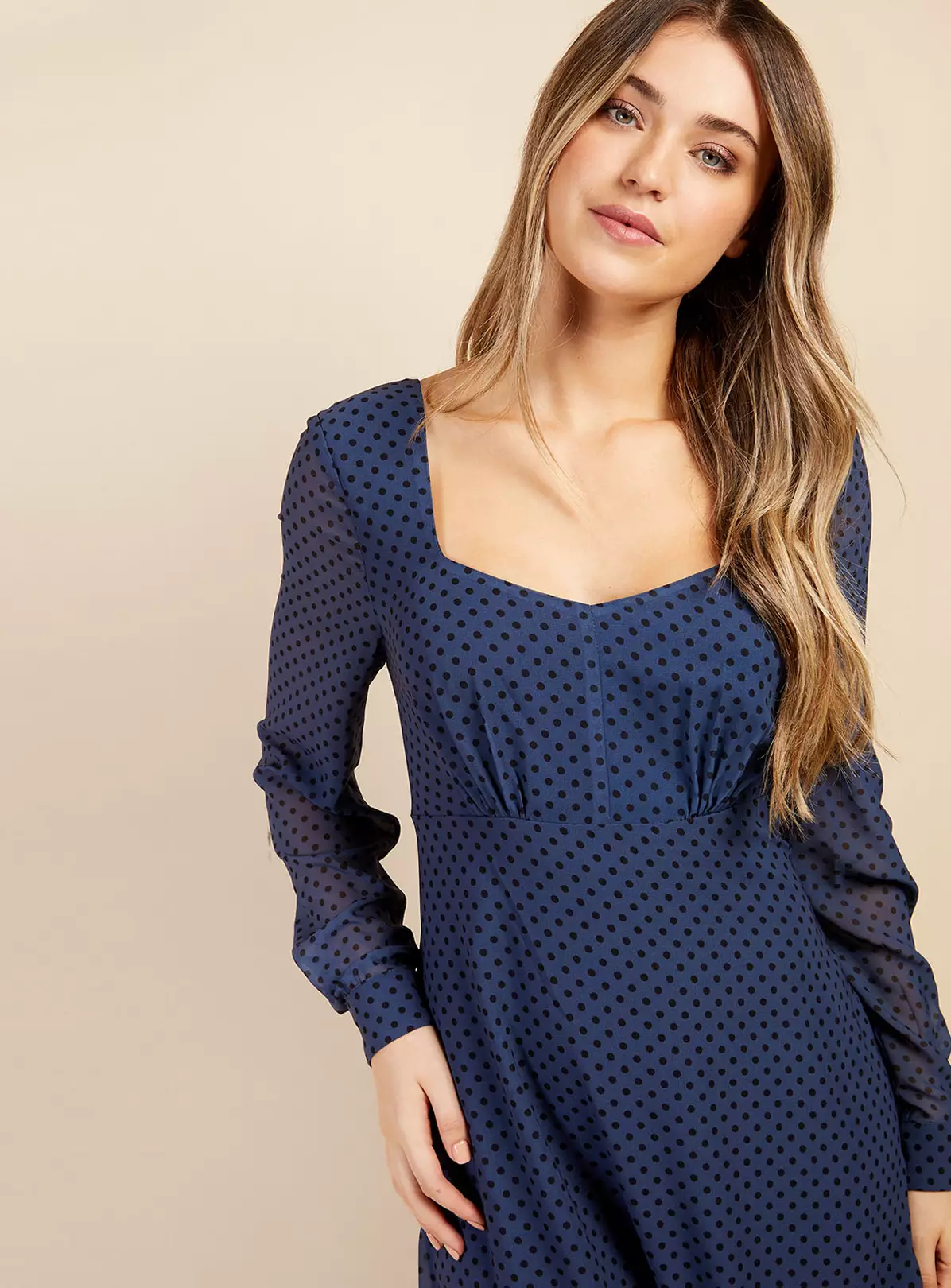 The sweetheart midi that’s giving us all of the feels, a feminine sweetheart bust and fluid midi skirt is perfectly complimented with romantic blouson sleeves. Designed in an all-over polka dot print for a on-trend twist on a classic silhouette.